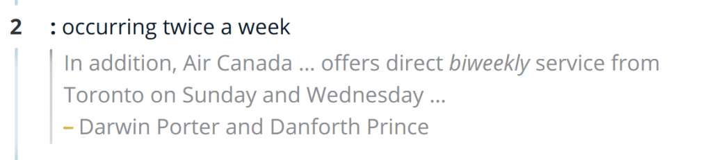 “Since bimonthly has the same clarity issue, how about #1 under the biweekly entry & #2 under bimonthly?”